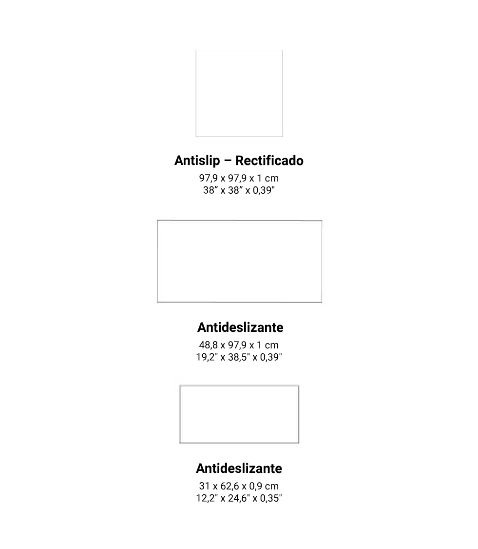 62,6 x 62,6 x 2,6 / 24,6″ x 24,6″ x 1,02″