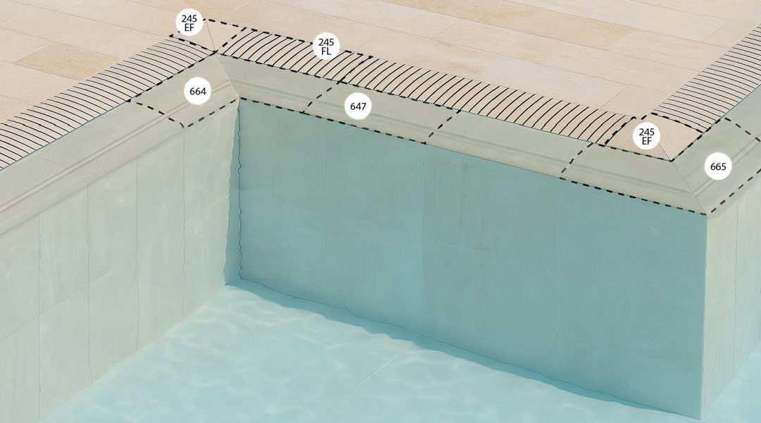 Bordes, medias cañas y piezas especiales para piscinas y turcos