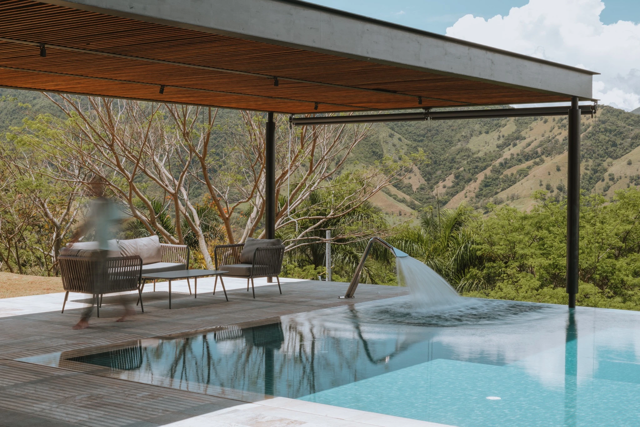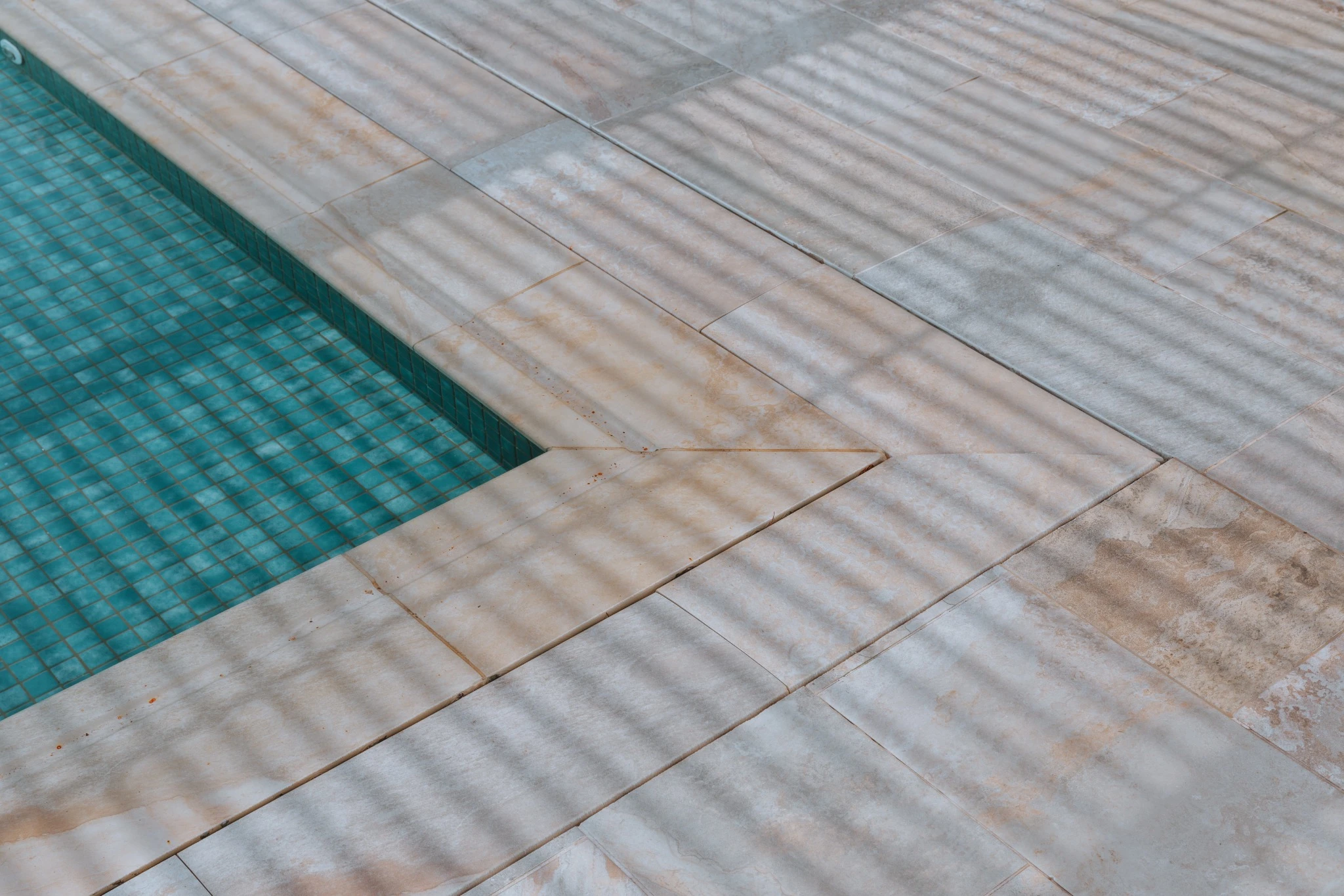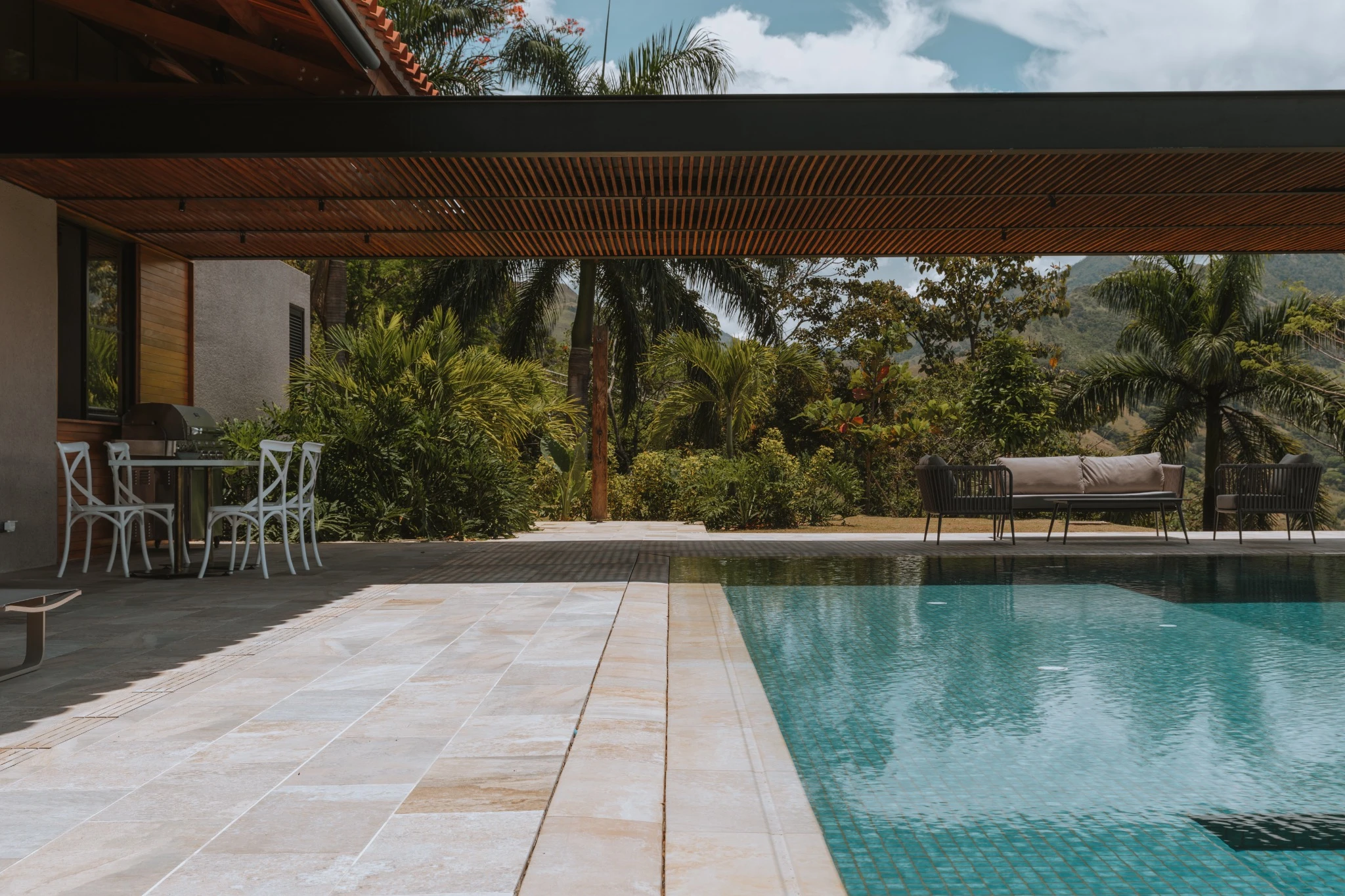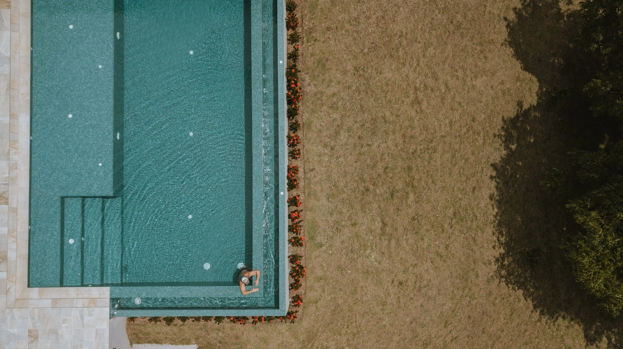 Piscina desbordante con mosacio vitreo y porcelanato para zonas humedas